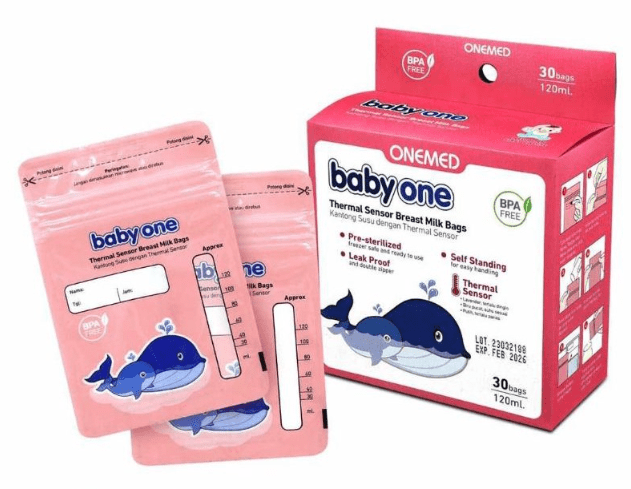 - Ada area khusus untuk menuliskan nama bayi, tanggal perah, dan volume ASI, sehingga memudahkan manajemen stok (FIFO: first in, first out).