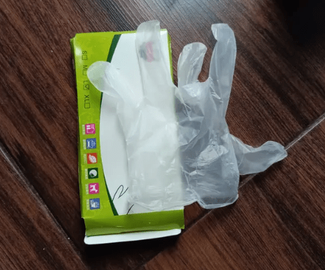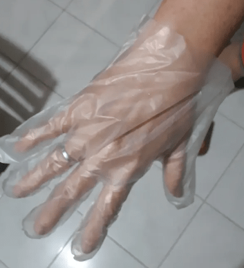 Sarung tangan sekali pakai berbahan polyvinyl chloride dengan warna transparan anti slip dan tidak mudah sobek.
